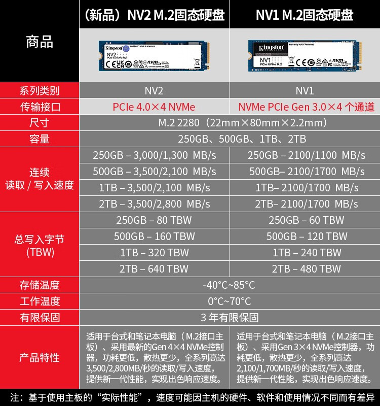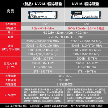 商品名称:金士顿固态硬盘 NV2 500G M.2 2280 NVME PCIe 4.0(16244)