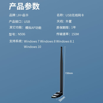 商品名称:晶华无线网卡150M 免驱 USB 长天线 wifi发射器 (16074)