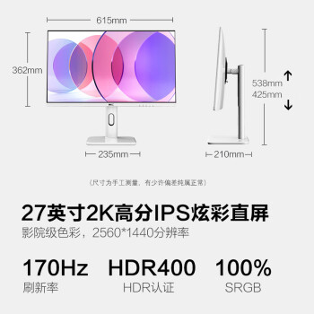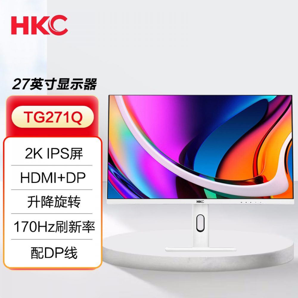 商品名称:HKC显示器 TG271Q 白 27寸/2K/170HZ/旋转升降/HDMI+DP 电竞显示器(16309)