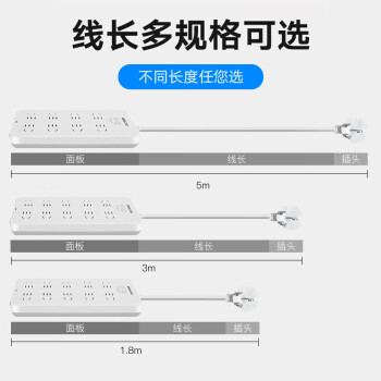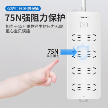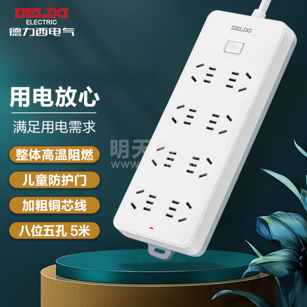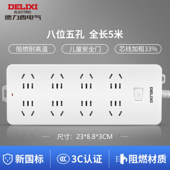 商品名称:德力西 LK8X 新国标 插座/插线板/接线板 8位5孔 总控 5米 (5307)