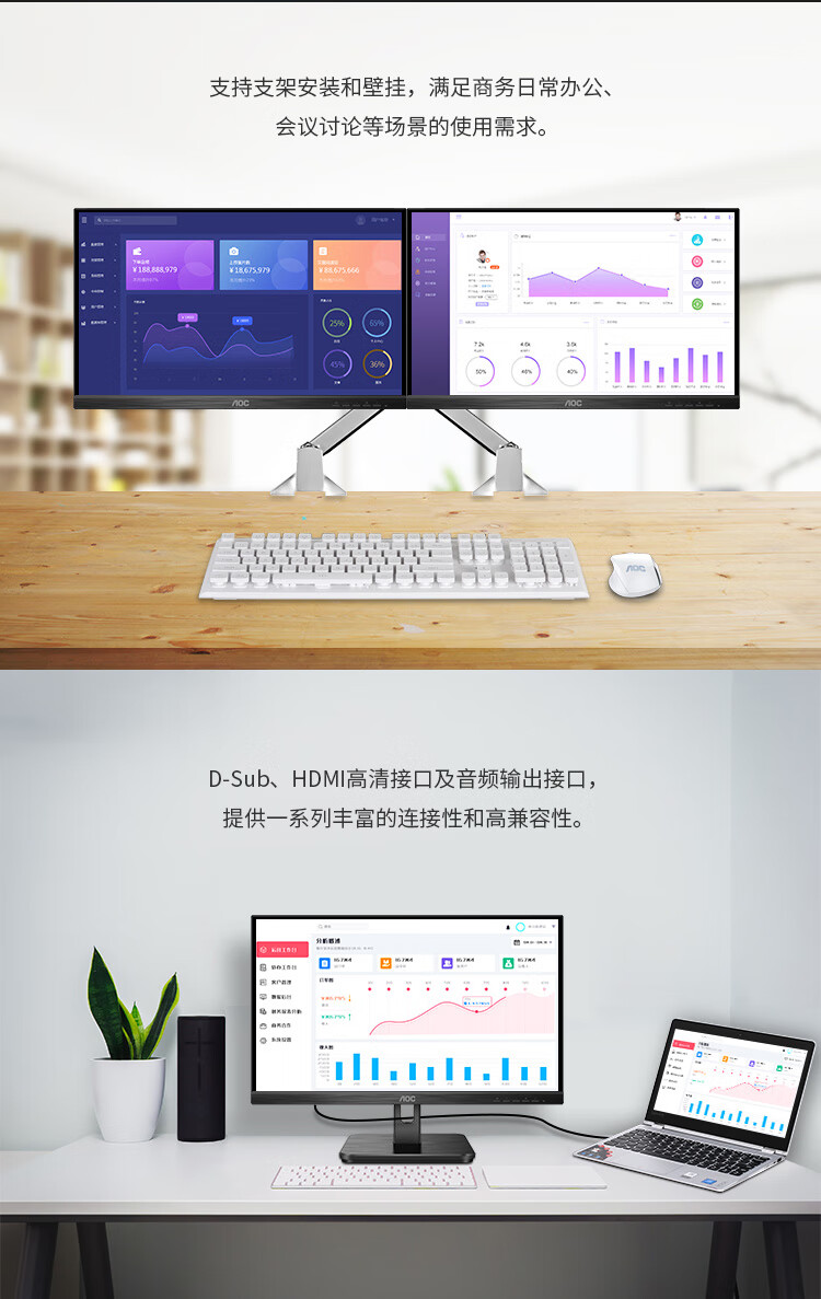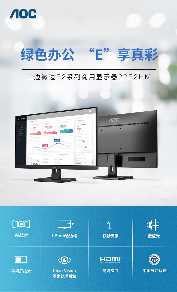AOC显示器 22E2HM 21.5寸 HDMI+VGA可壁挂 (17064)