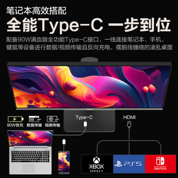 HDR400电脑屏幕/低蓝光爱眼广色域/Type-C 90W