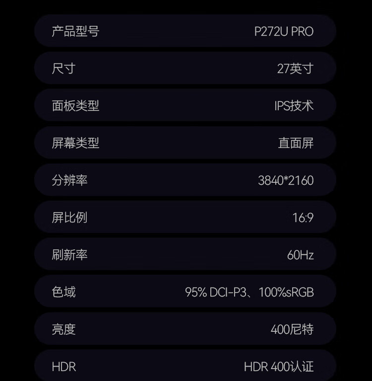 商品名称:HKC显示器 P272U Pro 27寸 4K高清 IPS屏 升降旋转 HDMI+DP (17292)