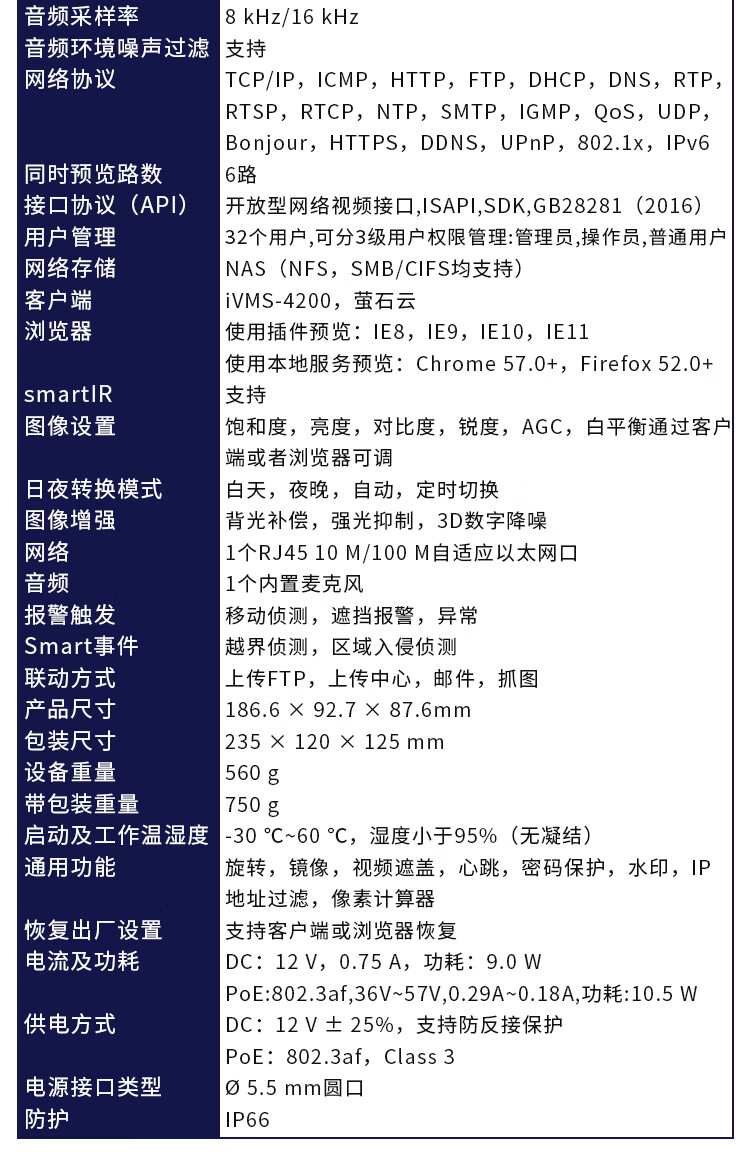 商品名称:海康 400万POE全彩枪机 DS-2CD3T46WDV3-L 4mm