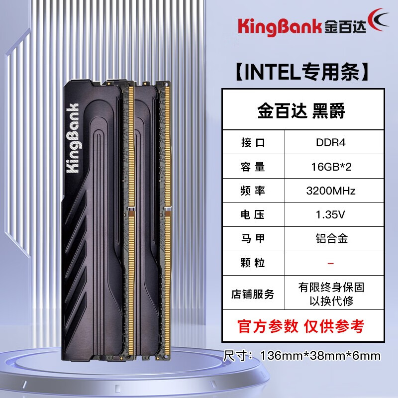 商品名称:金百达台式机内存 DDR4 32G(16G×2) 3200 黑爵系列 台式机内存 (18243)