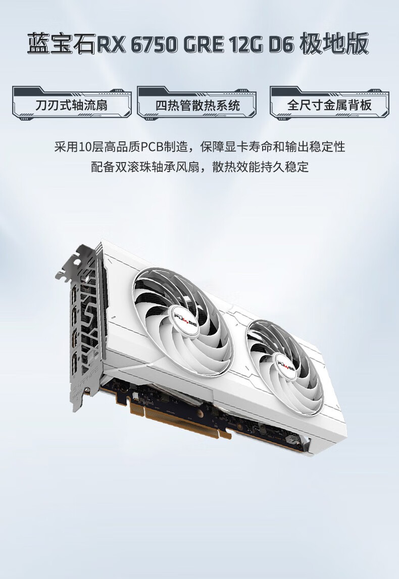 蓝宝石显卡 RX 6750 GRE 12G D6 极地版 双风扇/DP+HDMI (19395)