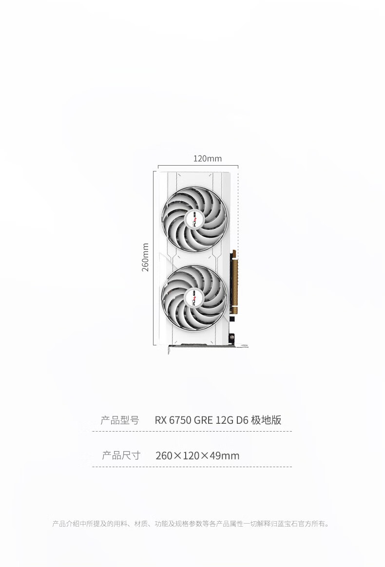 商品名称:蓝宝石显卡 RX 6750 GRE 12G D6 极地版 双风扇/DP+HDMI (19395)