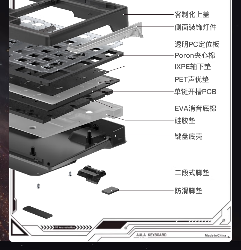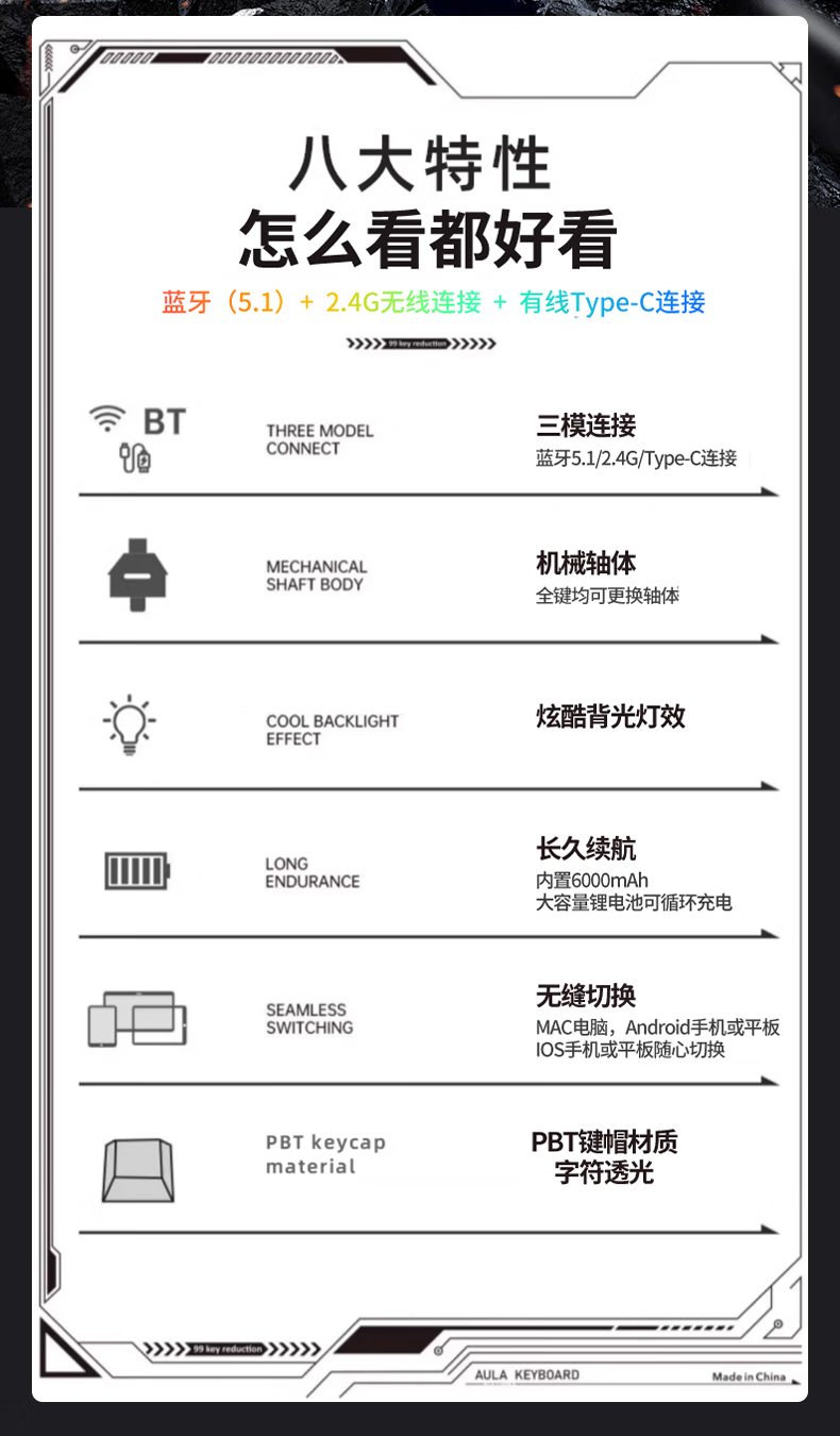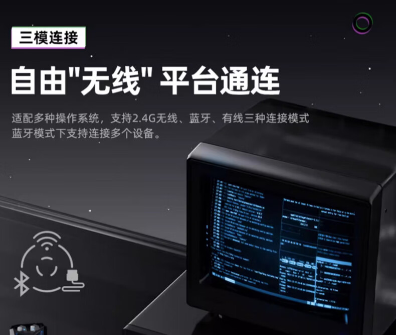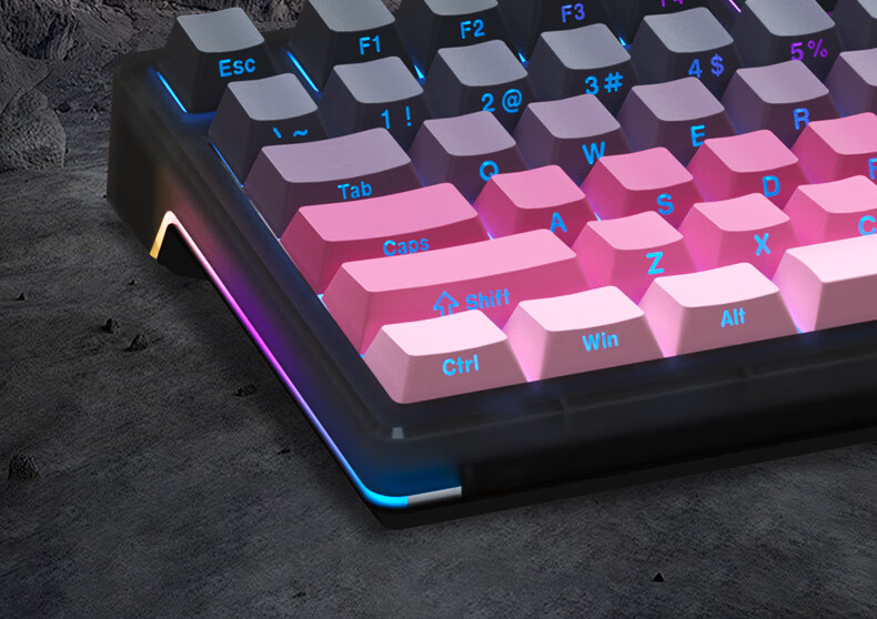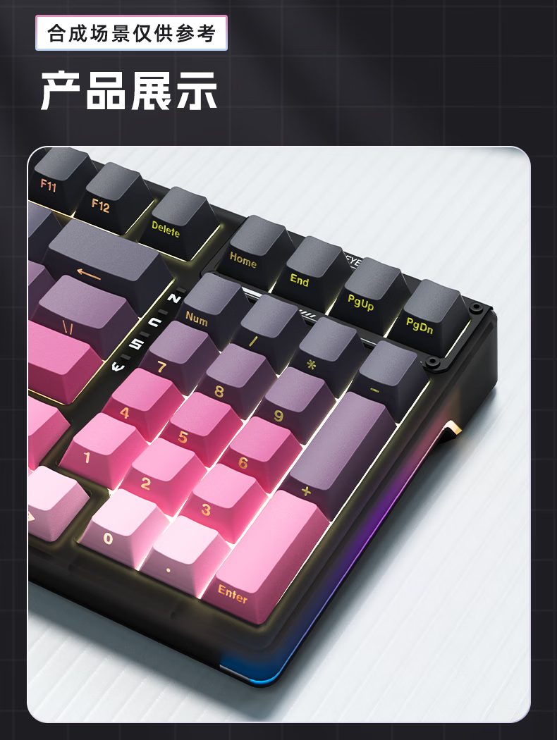 商品名称:狼蛛 F98 黑透-听雨轴 黑莓粉侧刻版 机械单键盘 三模 无线+蓝牙 99键 (22044)