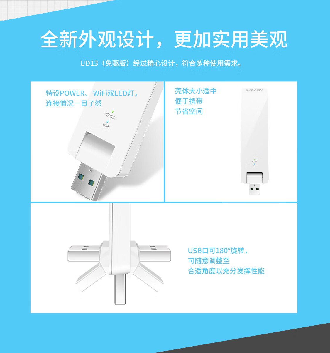 商品名称:【水星】双频无线网卡UD13 免驱版)/1300M/USB2.0 (19273)