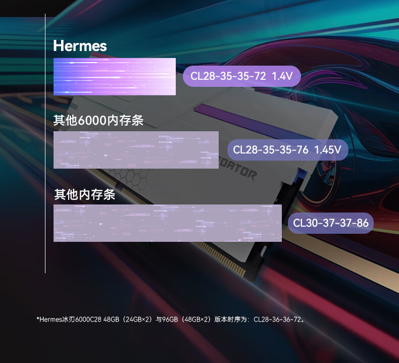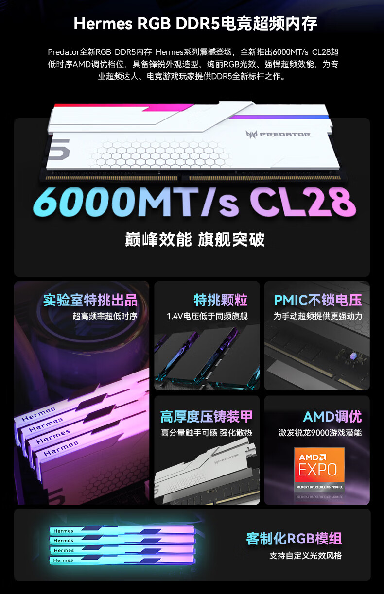 商品名称:宏碁台式机内存 冰刃 DDR5 48G 6000 套条 白色 RGB灯条 C28 (21481)