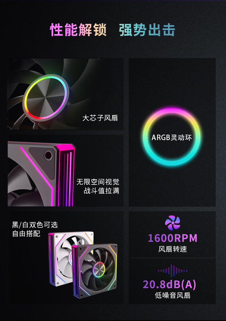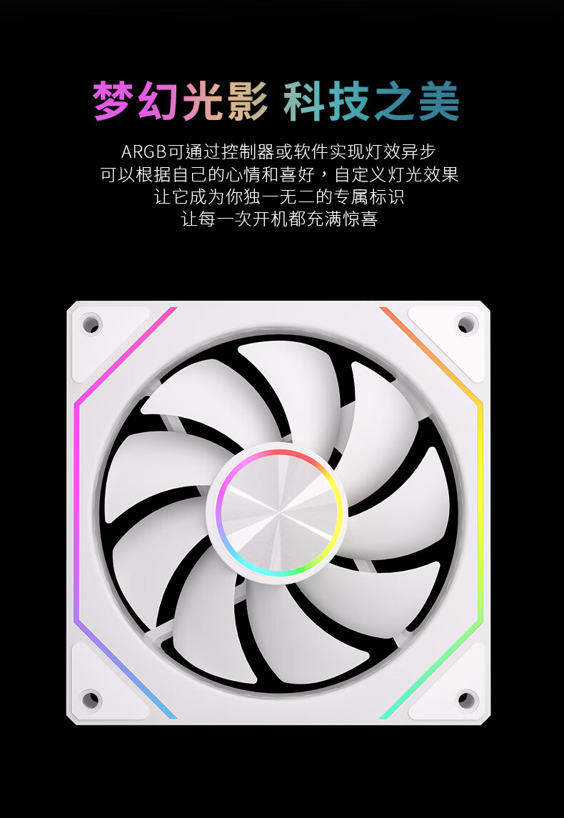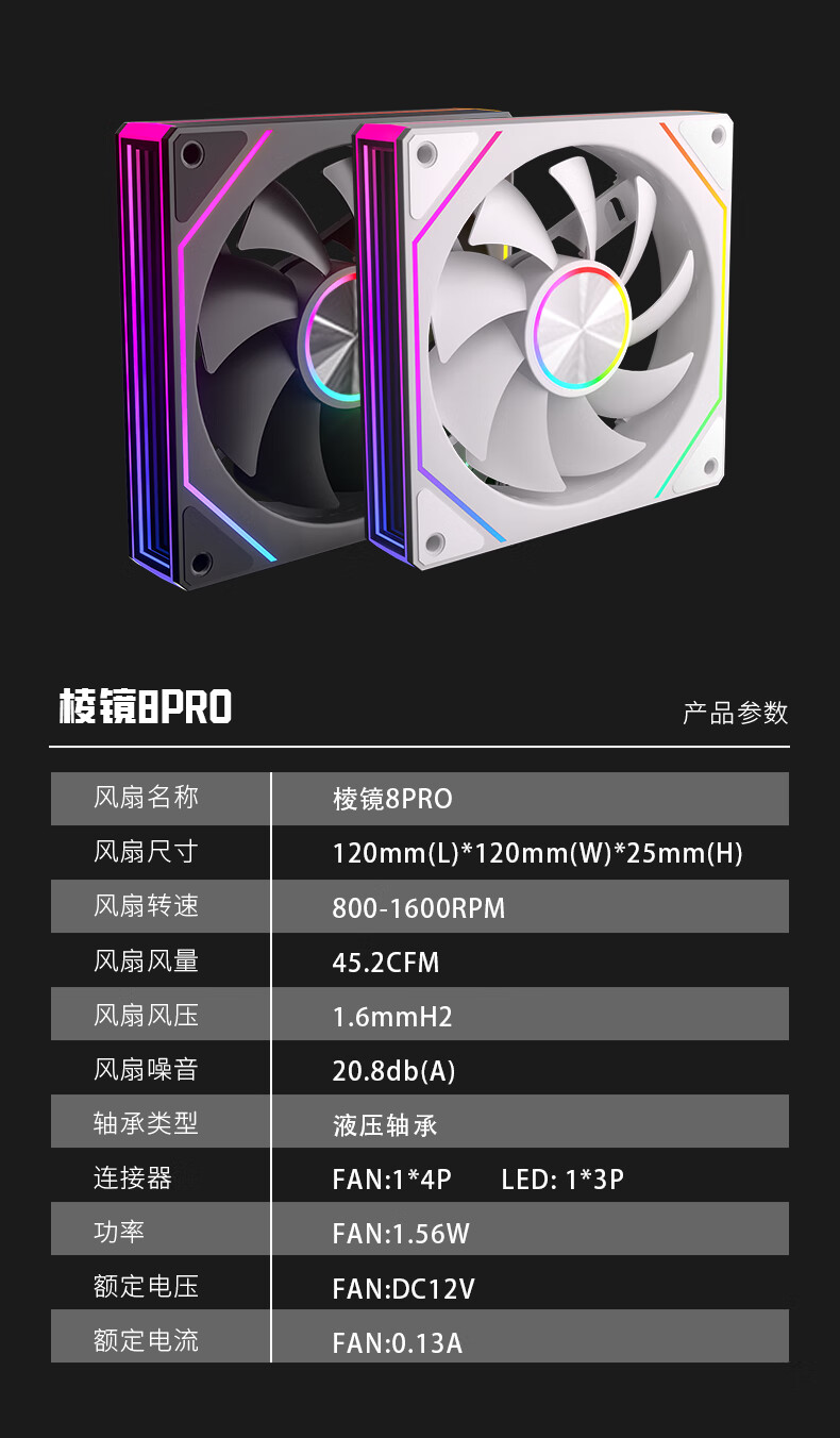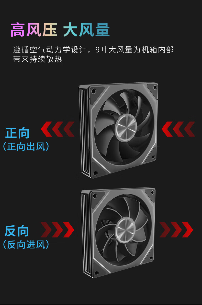 商品名称:动力火车 棱镜 8PRO 机箱风扇12CM ARGB 无限镜灯效 黑色 反叶 南京仓发货 (21876) 10送1