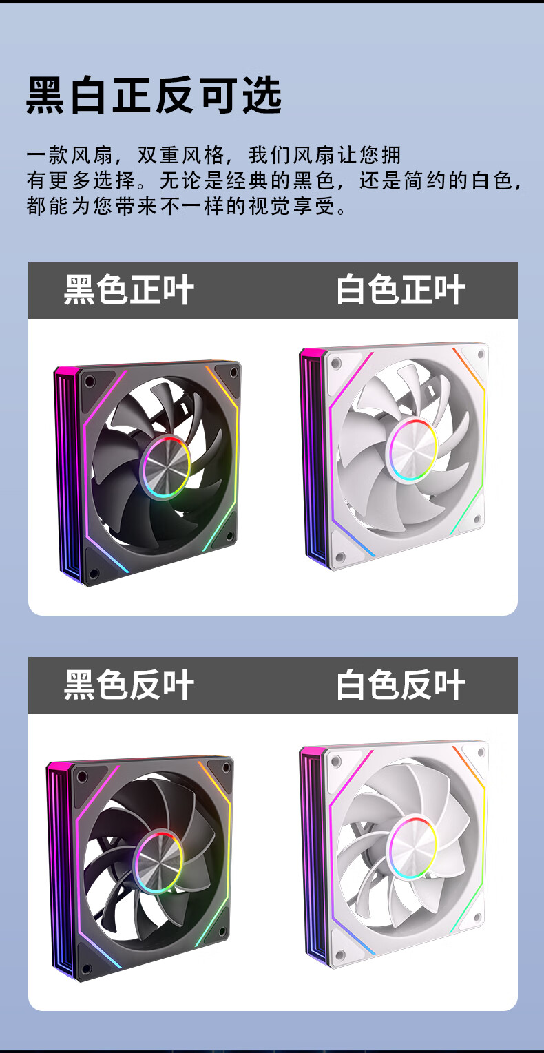 动力火车 棱镜 8PRO 机箱风扇12CM ARGB 无限镜灯效 黑色 反叶 南京仓发货 (21876) 10送1