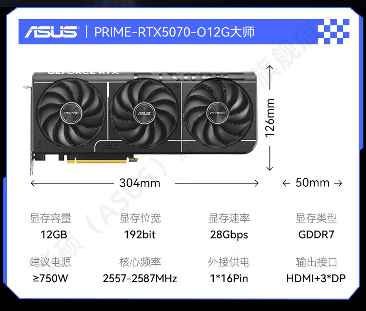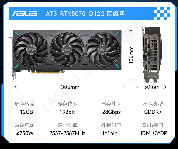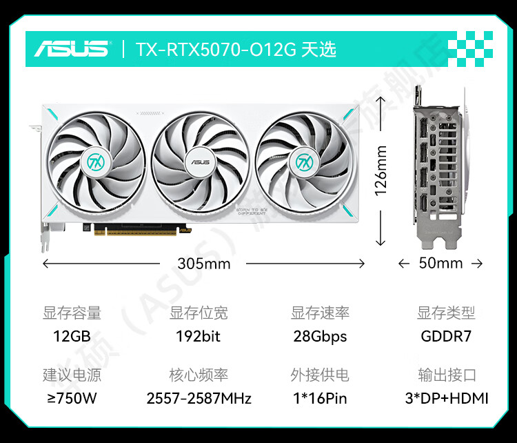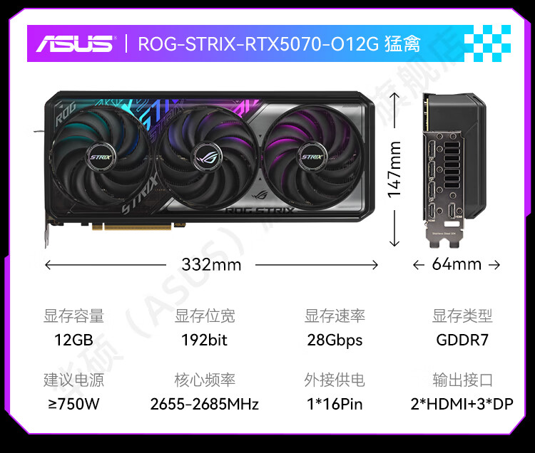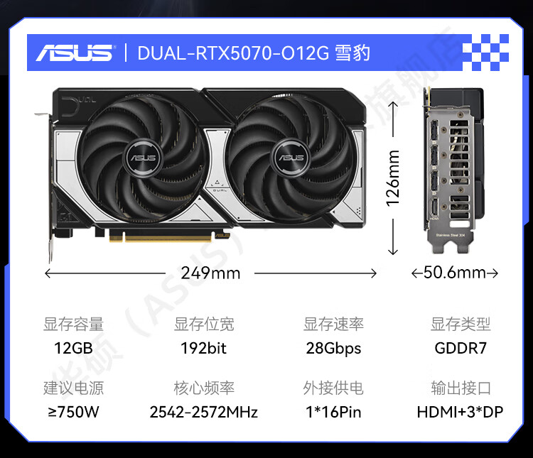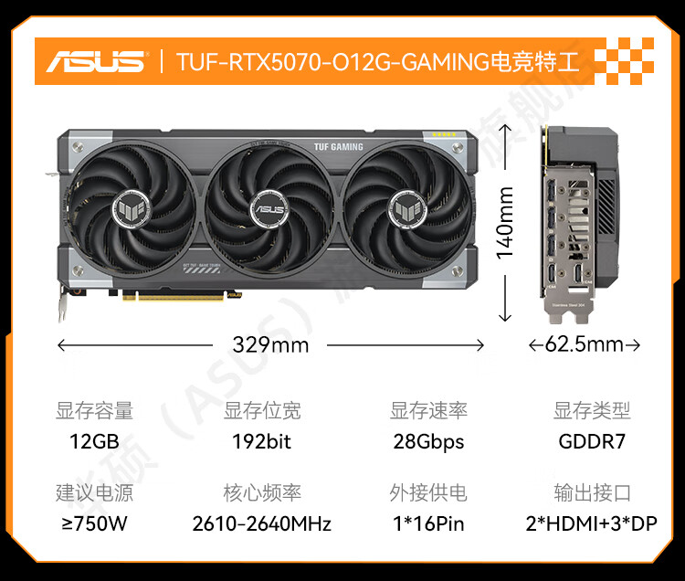 商品名称:华硕显卡 DUAL RTX5070 O12G 雪豹 双风扇/DP+HDMI (21411)