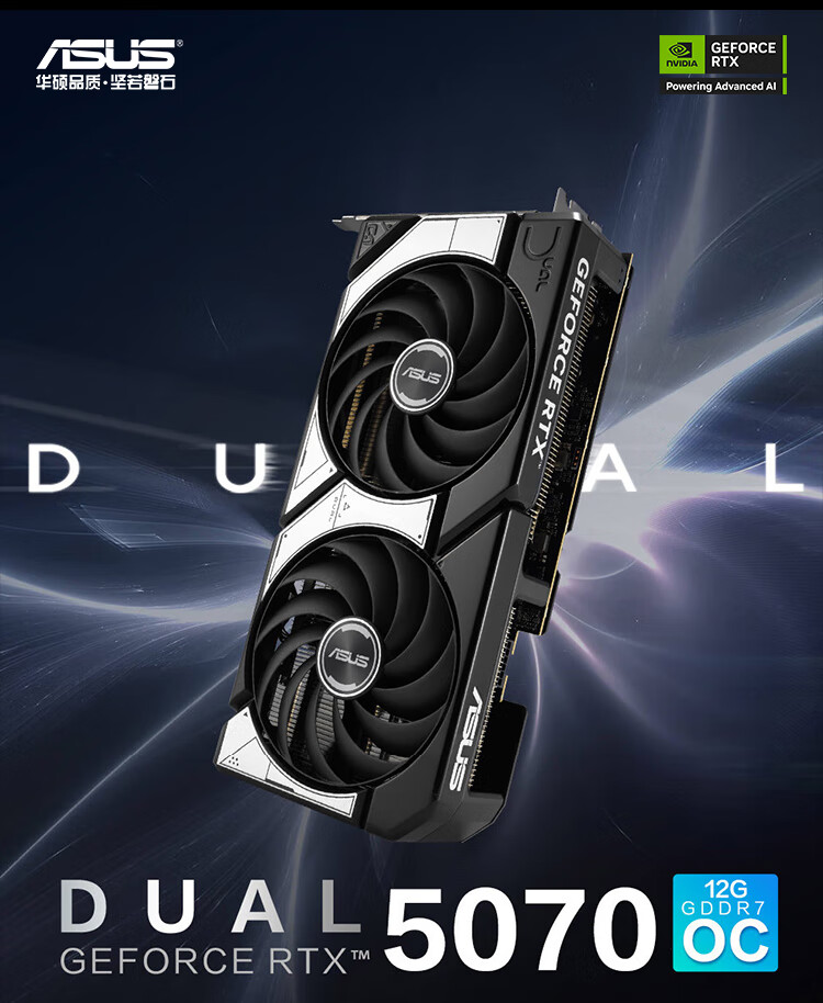华硕显卡 DUAL RTX5070 O12G 雪豹 双风扇/DP+HDMI (21411)