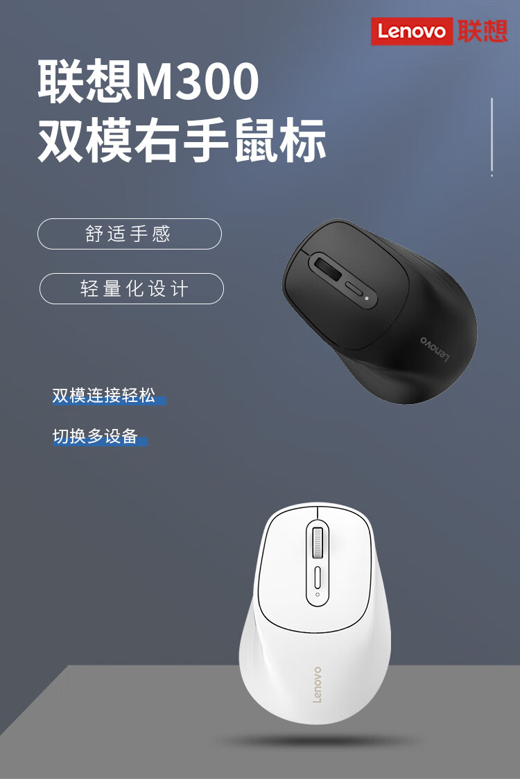 商品名称:联想 M300 无线蓝牙双模 单鼠标 可充电 右手鼠标 黑色 (22588)