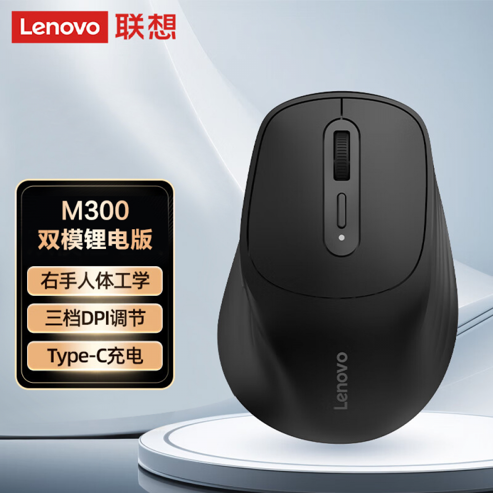 联想 M300 无线蓝牙双模 单鼠标 可充电 右手鼠标 黑色 (22588)