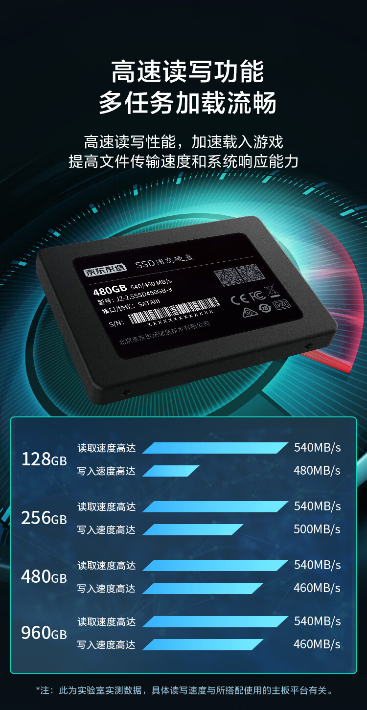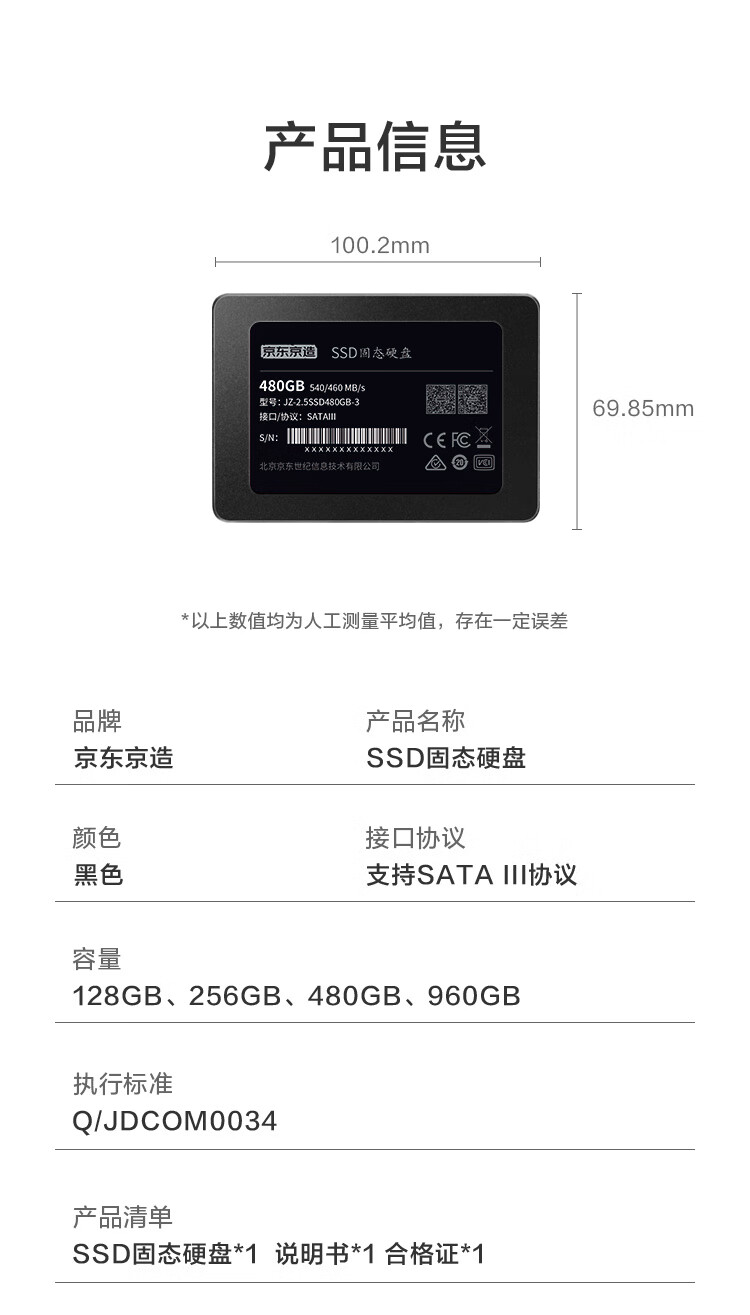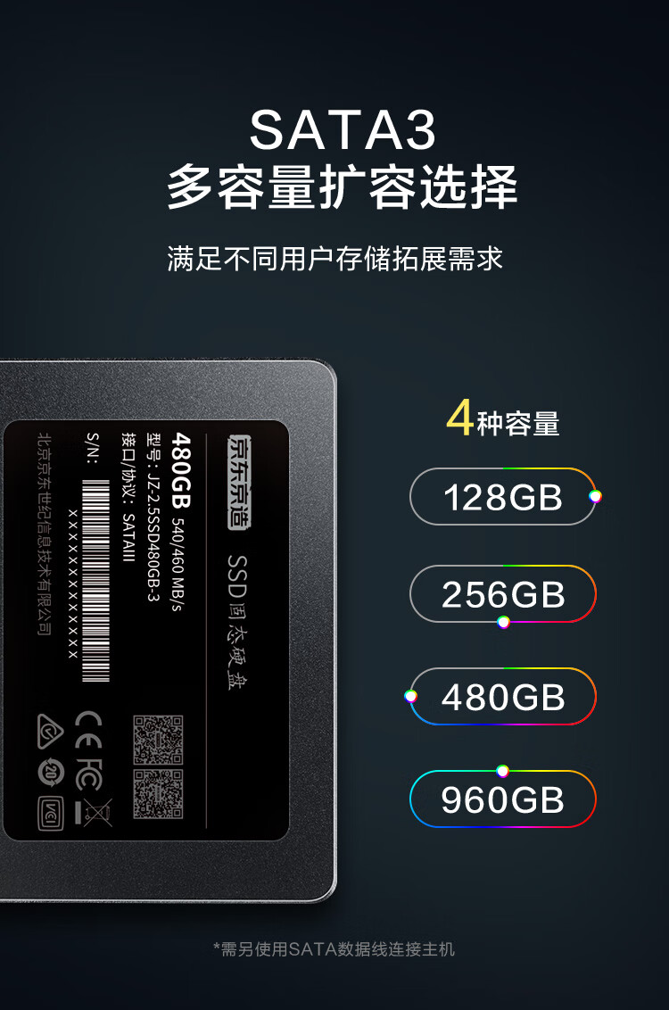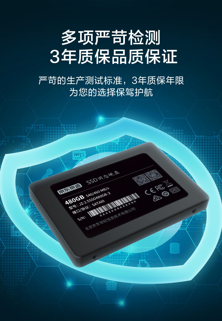 商品名称:京东京造固态硬盘 3系列 480G SATA3.0 (22646)
