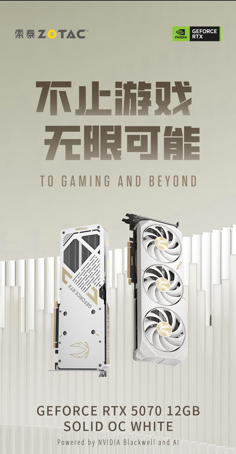 索泰显卡 RTX 5070 12G SOLID OC 白 三风扇/HDMI+DP (22802)